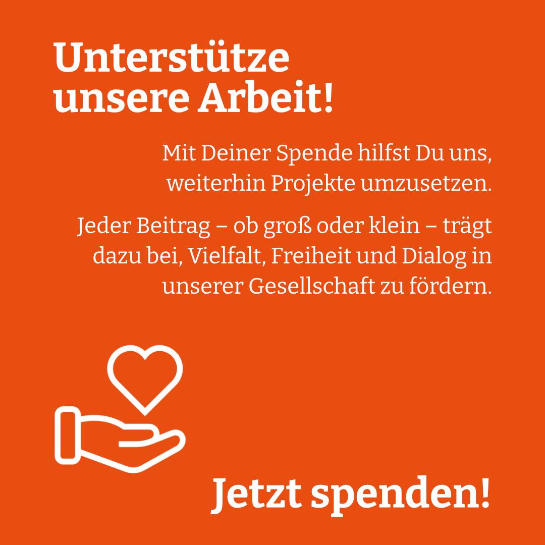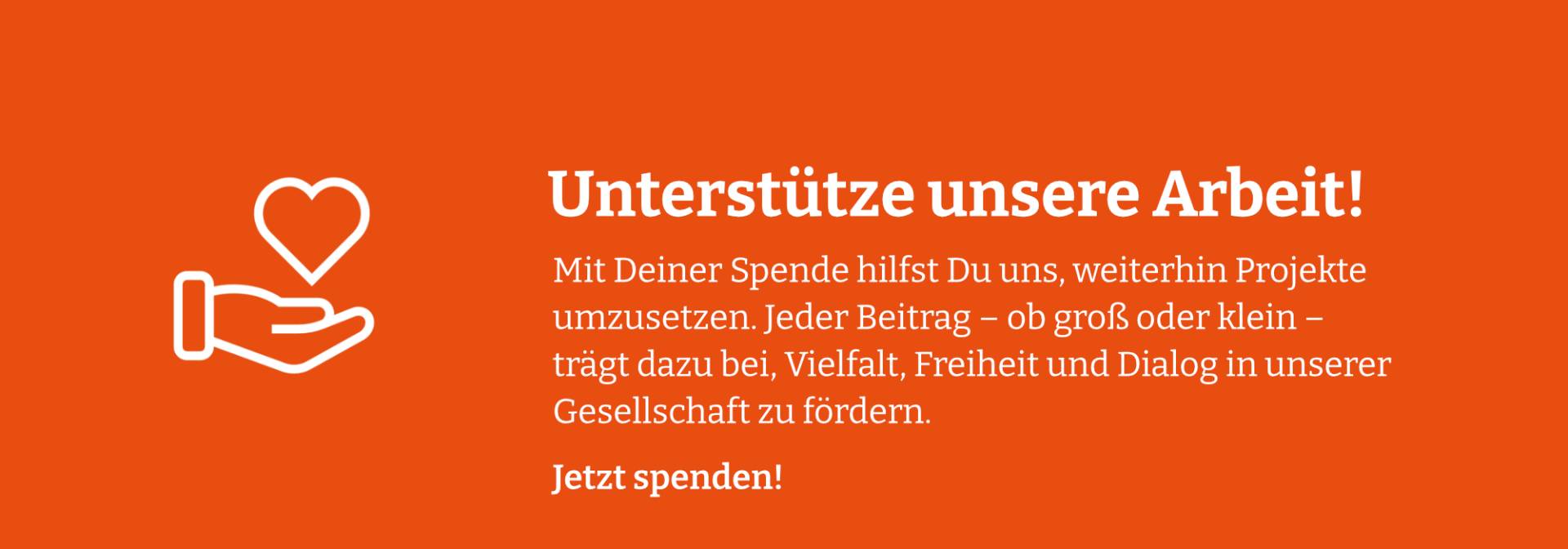 Mit Deiner Spende hilfst Du uns, weiterhin innovative Projekte umzusetzen – von internationalen Künstlerbegegnungen über Ausstellungen in der Galerie nEUROPA bis hin zu interkulturellen Festivals und Bildungsangeboten. Jeder Beitrag – ob groß oder klein – trägt dazu bei, Vielfalt, Freiheit und Dialog in unserer Gesellschaft zu fördern.