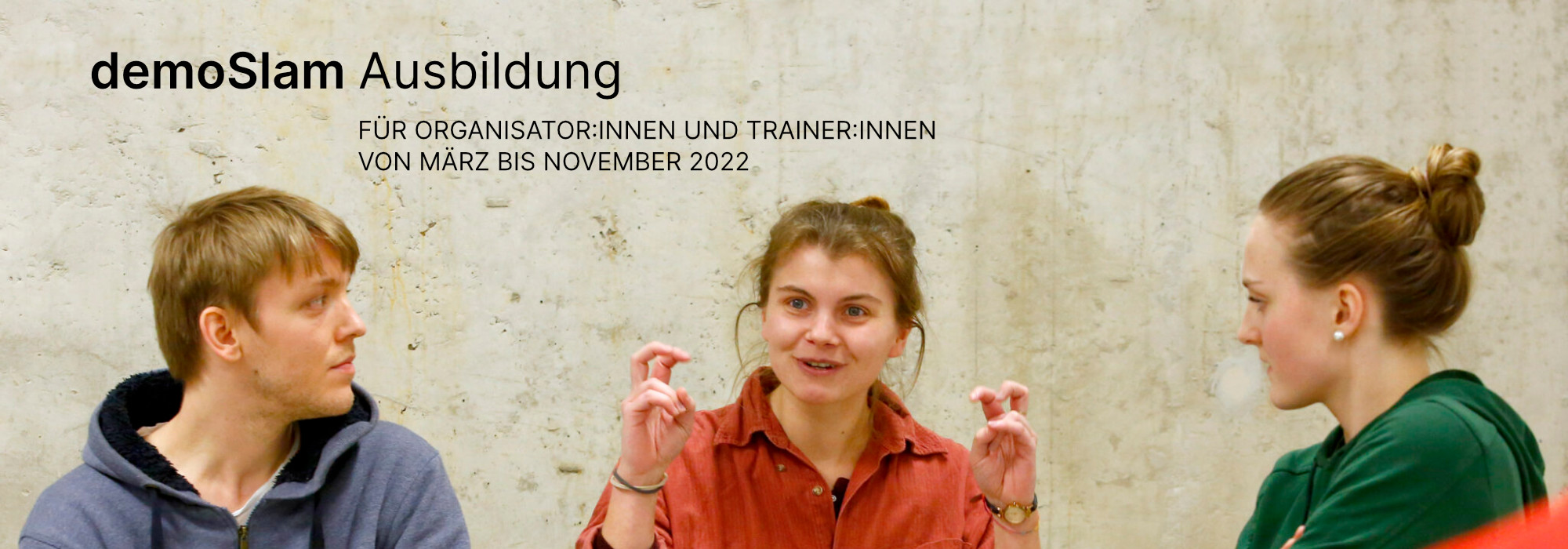 - AUSBILDUNG „demoSlam – Dialogformat für Verständigung vor Ort”demoSlam in Sachsen geht weiter – und Ihr könnt das Format in Eure Gemeinde holen und mitgestalten! Welche Streitthemen beschäftigen die Menschen bei Euch vor Ort?